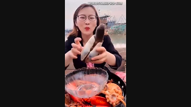 Ze zeggen wel eens dat Chinezen echt alles eten wat poten heeft behalve tafels en stoelen. Bij deze vrouw zou ik toch eerst even goed je stoel checken voordat je aanschuift…