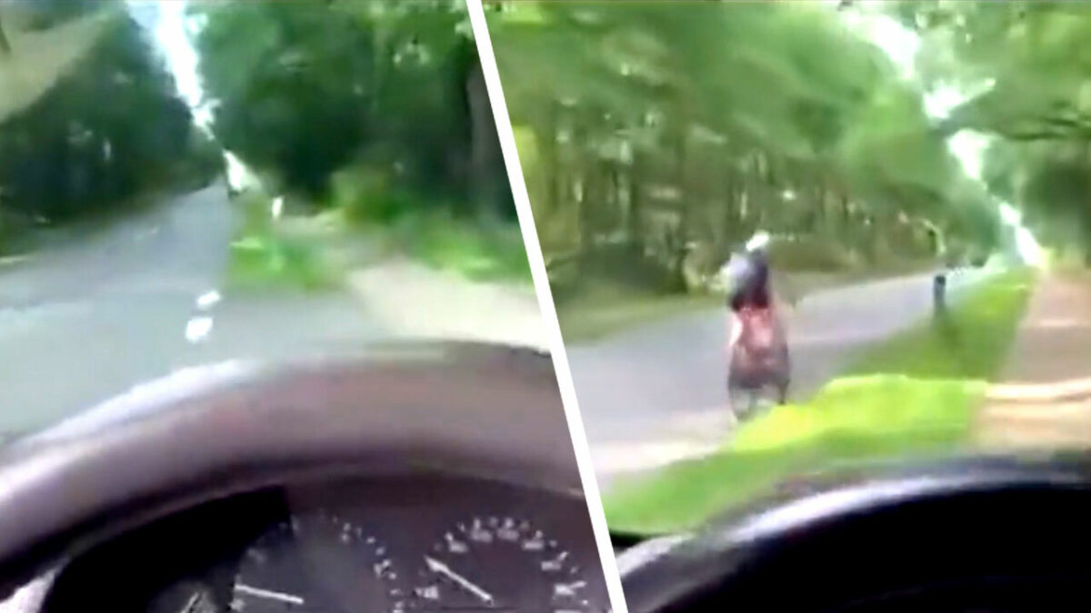 Automobilist maakt statement bij wielrenner die lekker op de weg fietst
