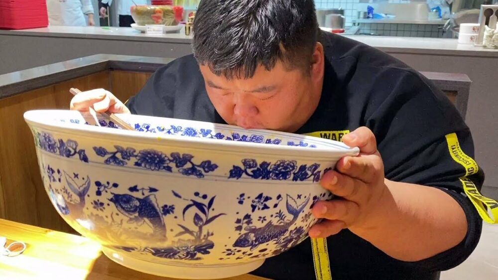 De beste man die zichzelf 'Fat Monkey' noemt gaat tijdens zijn lunch naar een noodlesrestaurant waar hij 30 minuten krijgt om een kommetje soep weg te werken. Moet te doen zijn toch?