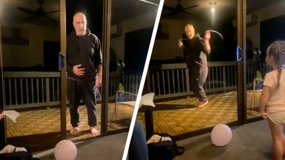 Opa showt dat 'ie nog steeds een echte pro in touwtjespringen is