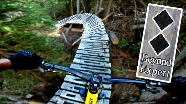 Dit MTB-parcours in British Columbia (Canada) kun je wat ons betreft wel vergelijken met een pikzwarte skipiste. Sommigen zouden het pad nog niet te voet afleggen laat staan op je stalen ros...