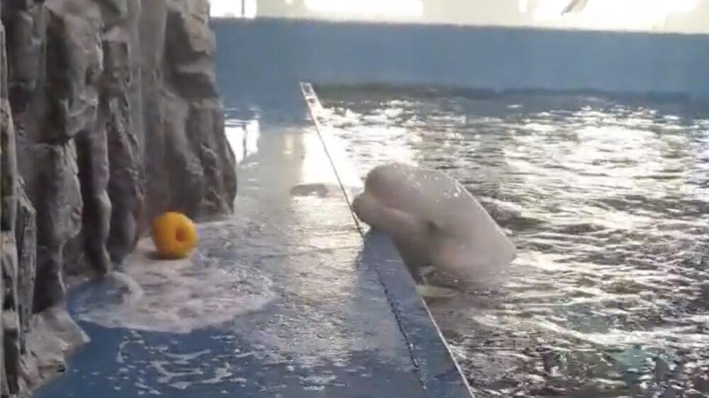 Wel eens gezien hoe een witte dolfijn zijn bal terughaalt? Dieren