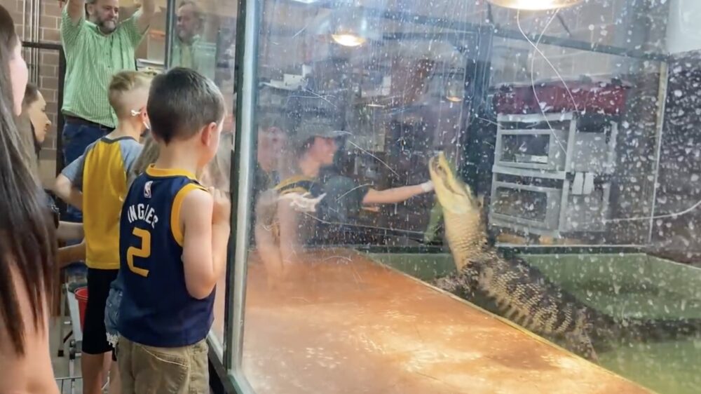 Wat een gezellig kinderfeestje had moeten worden, veranderde redelijk snel in een potentieel traumatische ervaring toen een alligator de hand van een begeleider greep en haar mee naar binnen trok 😱