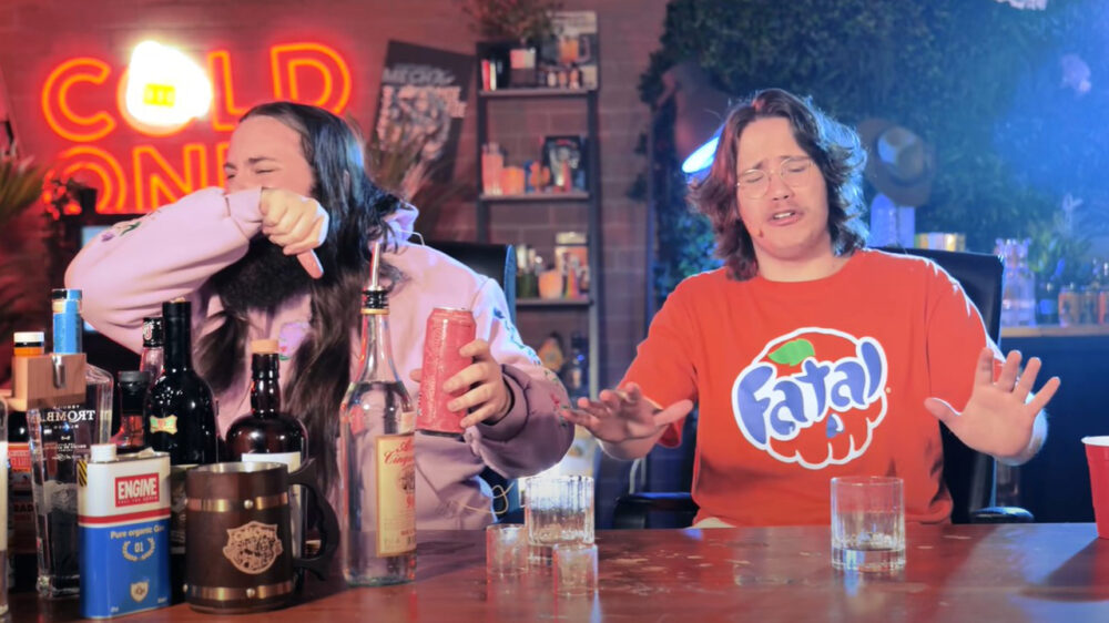 Chad en Deez Max testen in het programma 'Cold Ones' verschillende soorten sterke drank met een steeds hoger alcoholpercentage. 96% lijkt ons prima om lijm- of viltstiftvlekken mee te verwijderen, maar niet om te drinken. Proost 🥃