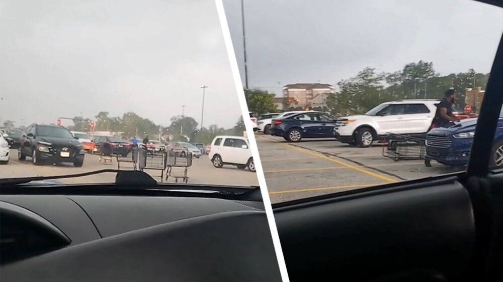 Gewoon rustig vastleggen hoe winkelwagens auto's op een parkeerplaats aanvallen