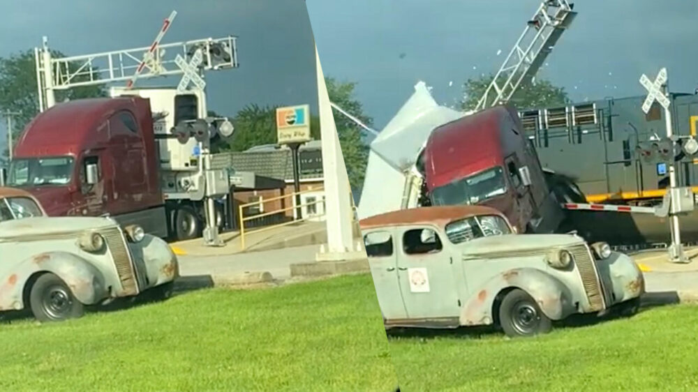 De zoveelste vrachtwagenchauffeur die zijn gevaarte op een spoorwegovergang parkeert