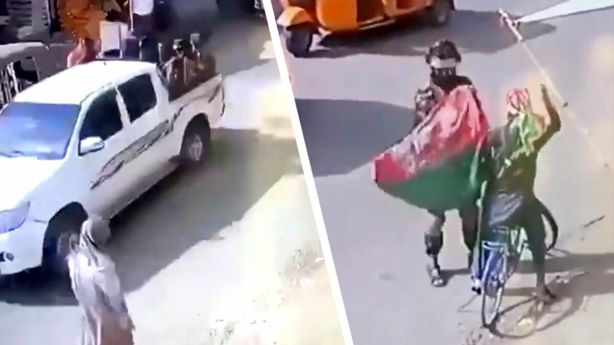 Taliban neemt Afghaanse vlag in beslag van man op z'n fiets Random