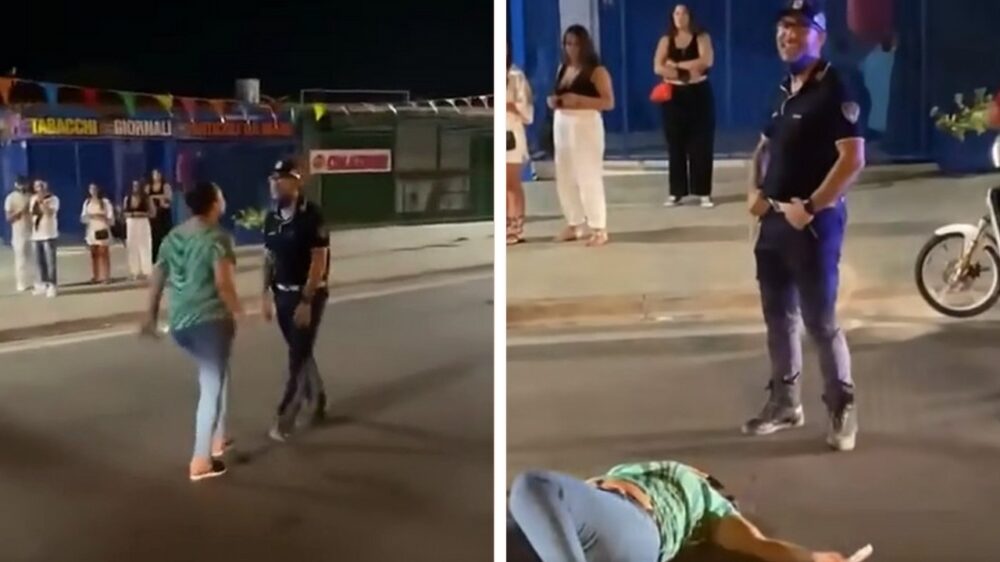 Ze probeert een Italiaanse politieagent uit zijn tent te lokken, maar als hij niet reageert zijn haar batterijen ineens leeg. Zijn lach zegt genoeg 😅