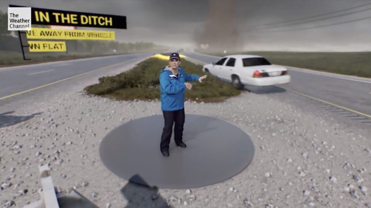 De dames en heren van The Weather Channel leggen met behulp van augmented reality uit wat je het beste kunt doen tijdens een tornado. Nou hebben wij hier voorlopig geen last van, maar hoe lang gaat dat nog duren...