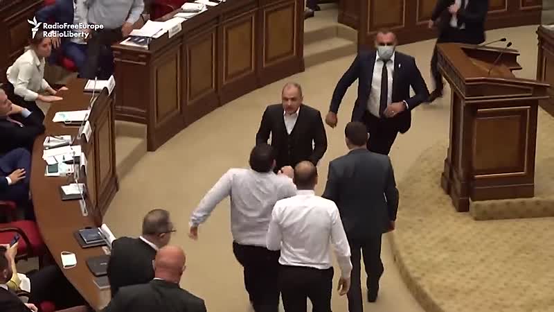 De spanningen lopen in bepaalde delen van Armenië hoog op na de oorlog van vorig jaar in de regio Nagorno-Karabach. Nadat een politicus van een regeringspartij een paar oud-ministers van Defensie 'verraders' noemde sloeg de vlam in de spreekwoordelijke pan en gingen ze elkaar te lijf.