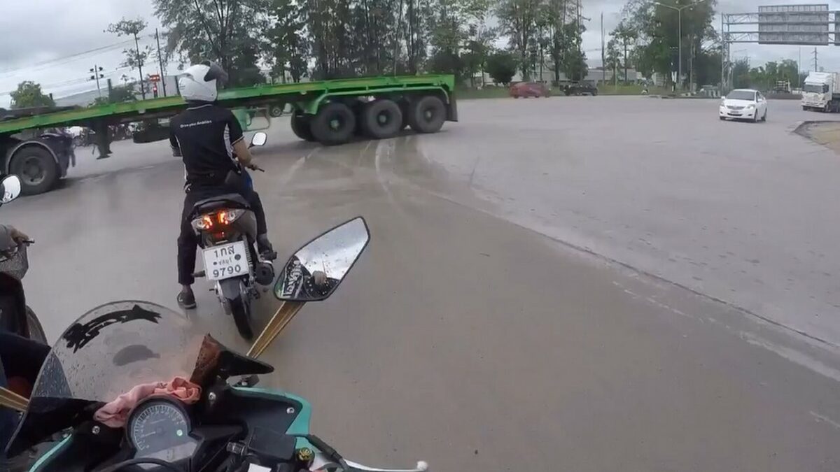 Hersenloze motorrijder heeft geen zin om voor het rode licht te moeten wachten Fails