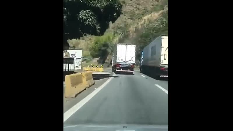 Vrachtwagenchauffeur vond het een goed idee om in een scherpe bocht in te halen Fails