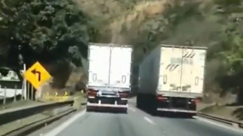 Vrachtwagenchauffeur vond het een goed idee om in een scherpe bocht in te halen