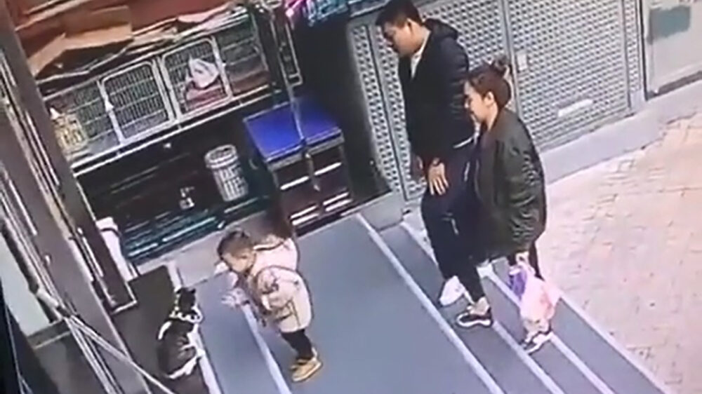 Echte Retriever haalt lastpak voor de zoveelste keer van de veranda Dieren