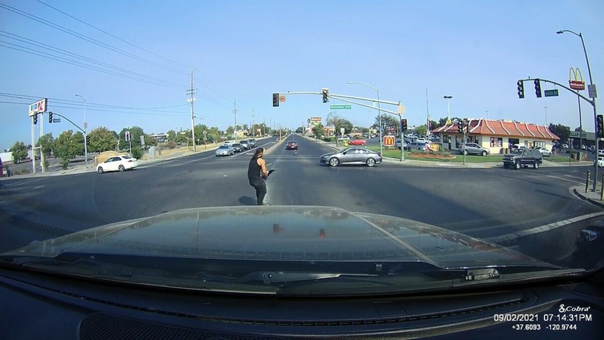 Skateboarder met hond wordt aangereden als hij door rood jankt