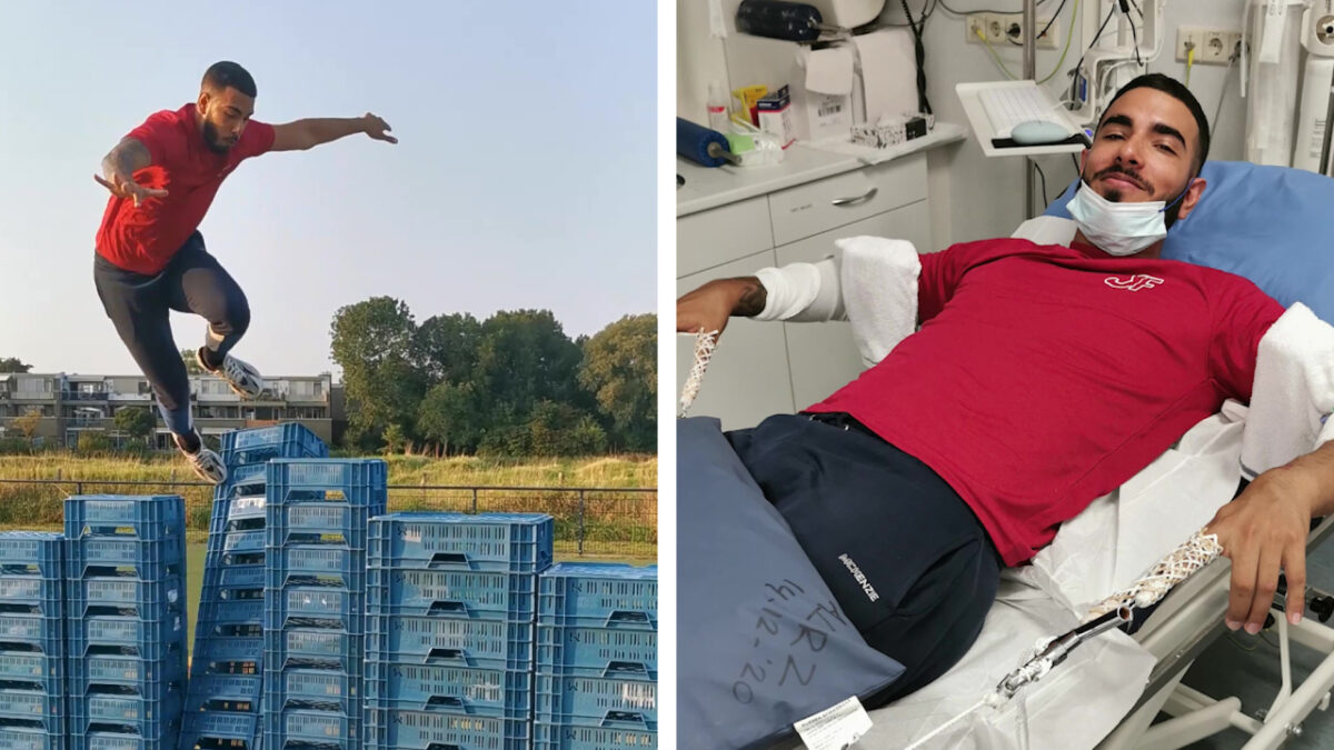 Nee, want het blijkt namelijk bijna niet mogelijk. Dat ondervond ook YouTuber Djaniboi die voorlopig even weinig zal stunten. Hij brak bij de challenge namelijk beide polsen... (via)
