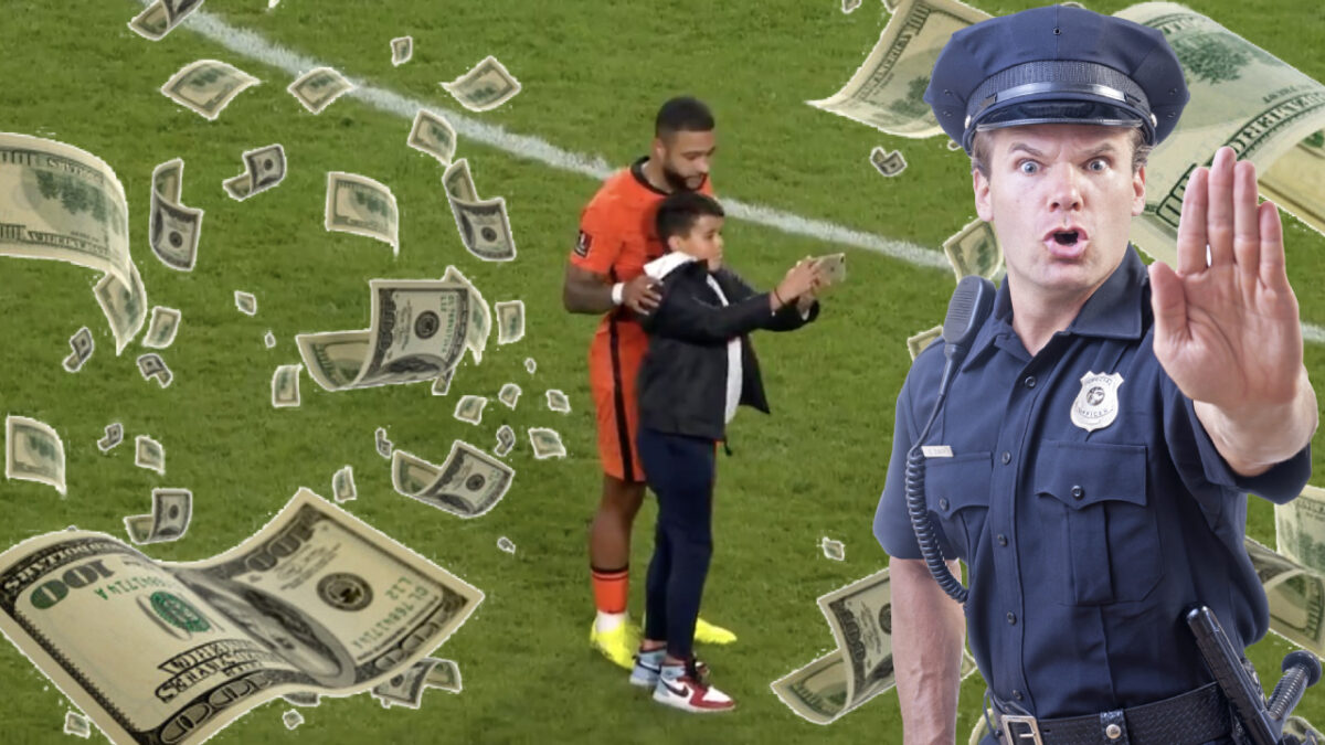 Mannetje dat veld op rende voor selfie met Depay riskeert €15.000,- boete en stadionverbod