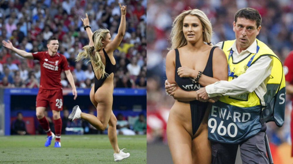 De oersaaie CL-finale tussen Tottenham en Liverpool had één klein hoogtepuntje; een streakende Kinsey Wolanski. Youtuber Vitaly, die dit soort geintjes zelf al vaker heeft geflikt, heeft blijkbaar een nieuwe website gelanceerd - Vitaly Uncesored - en die heeft natuurlijk wat gratis exposure nodig.