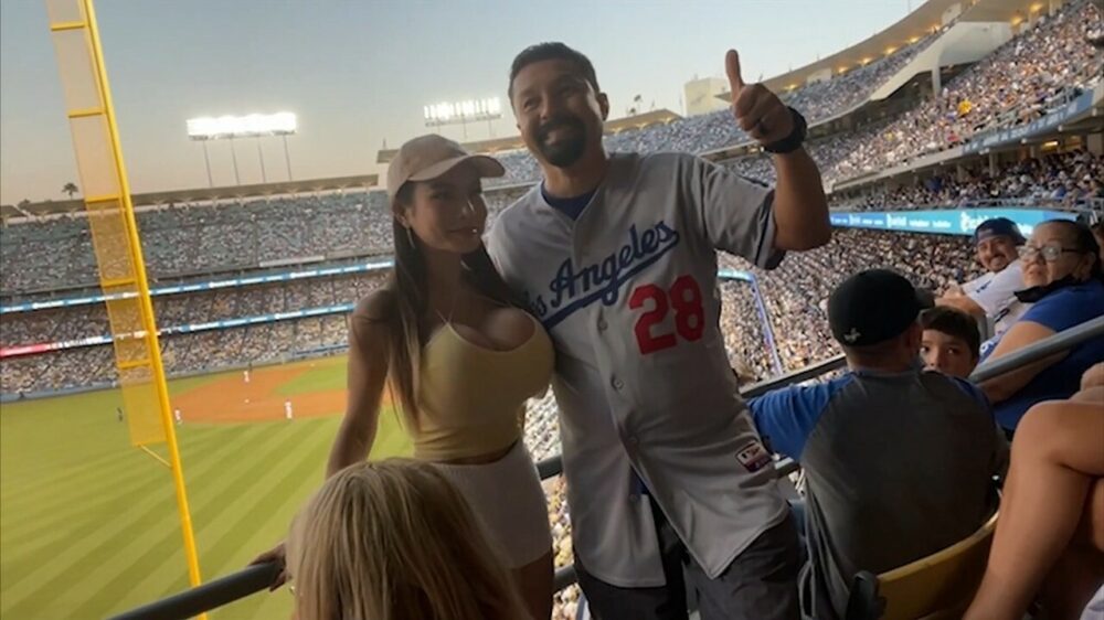 Twitcher 'AsianBarbieDDoll' eist alle aandacht op tijdens een honkbalwedstrijd
