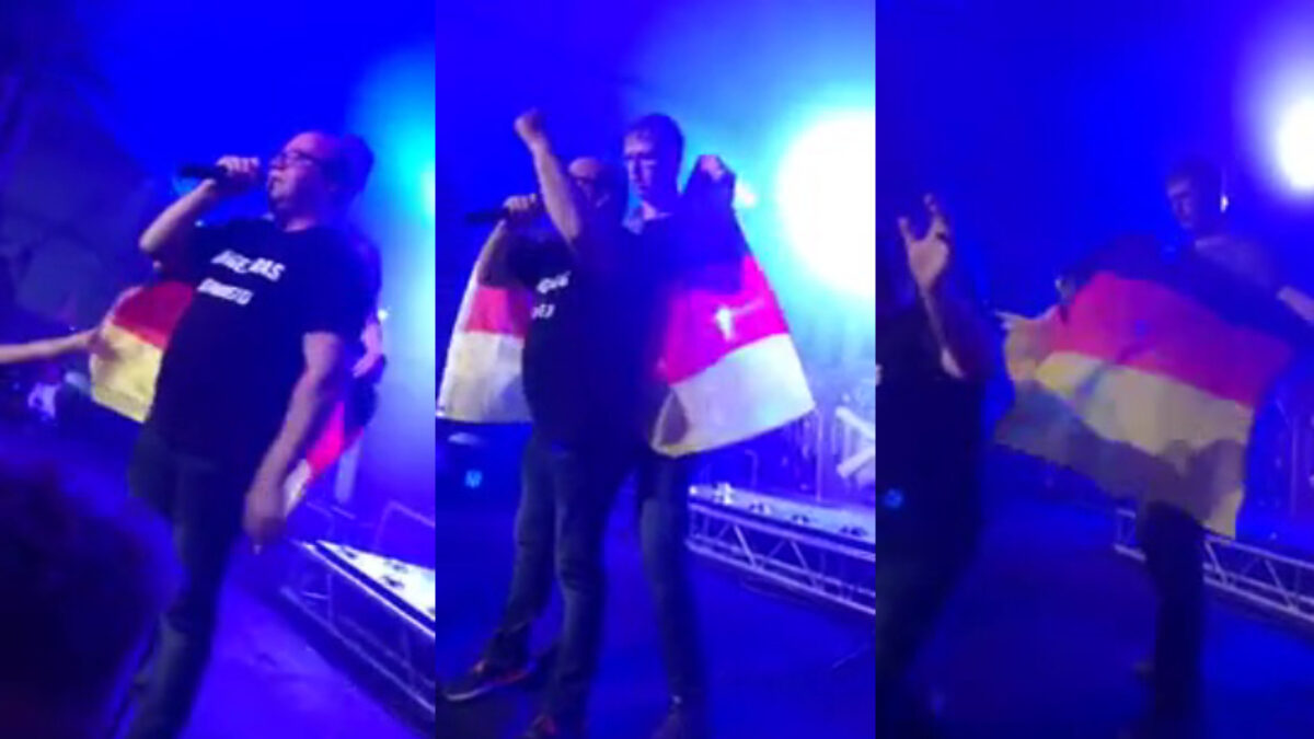 Zanger Bas wordt door mafklapper van het podium afgekontebonkt Bizar