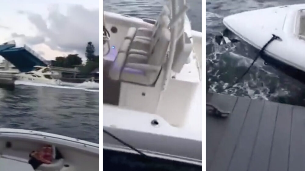 Booteigenaar jaagt met hoge snelheid onder de brug door, iedereen pissig
