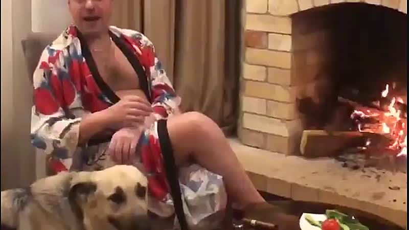 Gestoorde Rus in kimono slaat een fles op zijn eigen hoofd kapot Gekkies