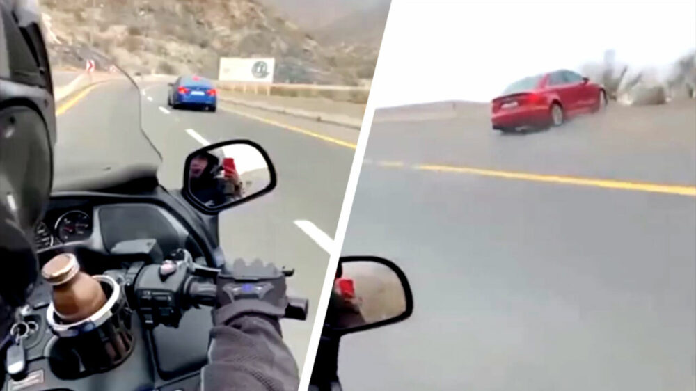 Audi S3 in Saudi-Arabië geeft gas, haalt rechts in en rijdt zichzelf de afgrond in