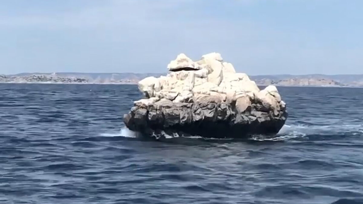De Franse kunstenaar Julien Berthier vond een versleten boot en toverde hem om tot een hyperrealistische drijvende rots. Ziet er best bijzonder uit als je hem zo ziet varen langs de kust van Marseille.