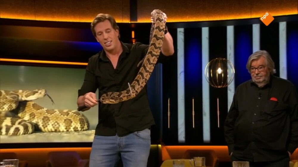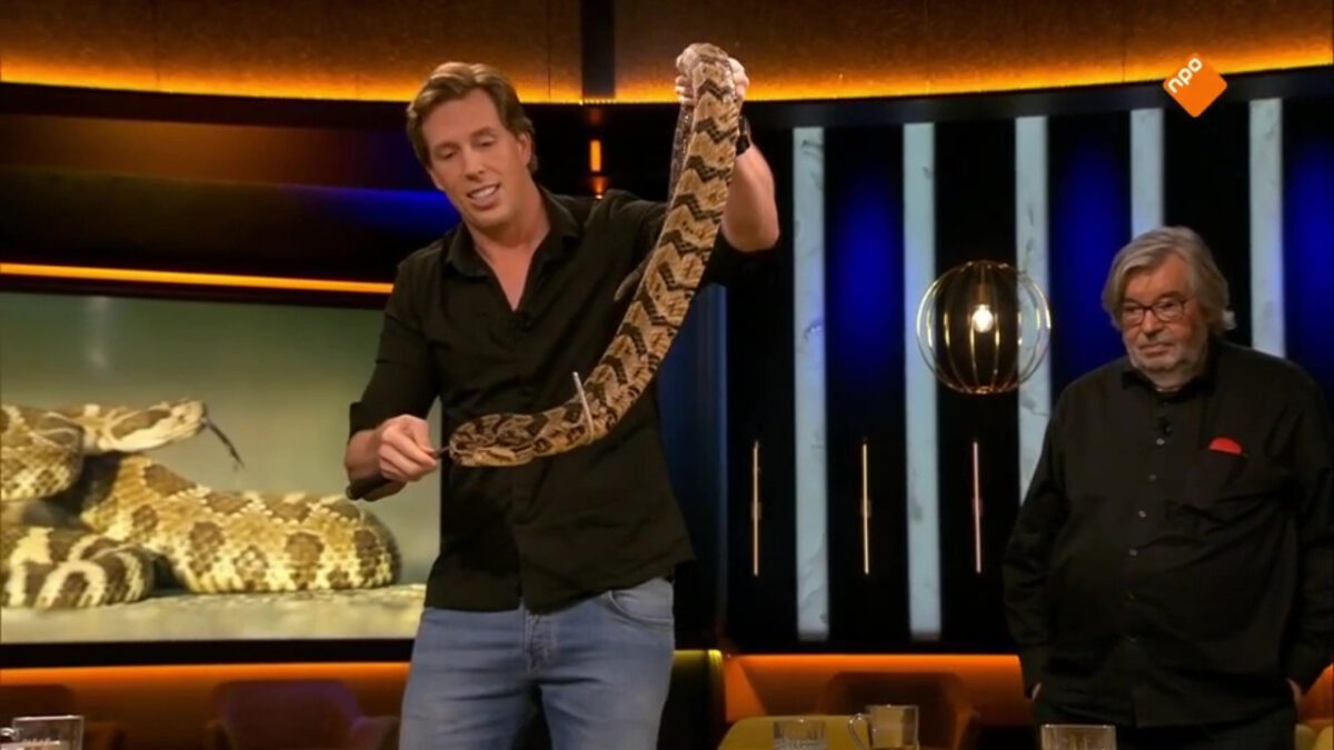 Freek gonna Freek en pleurt een levensgevaarlijke ratelslang op tafel bij OP1