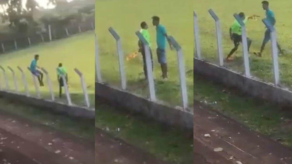 Voetbalsupporter klimt over hek om de grensrechter een lesje te leren Knokken