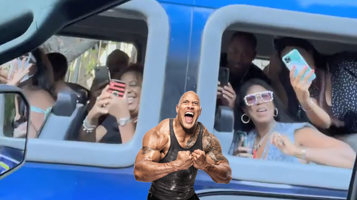Dwayne 'The Rock' Johnson stopt weer naast een celebrity-tourbus om ze te verrassen