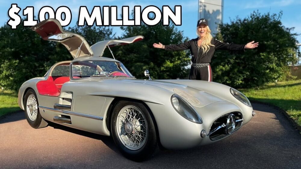 Supercar Blondie is ergens in Duitsland om een kijkje te nemen naar de duurste auto ter wereld. De Mercedes 300SLR uit 1955 is meer dan $ 100 miljoen waard en sommige experts hebben de Mercedes zelfs geschat op $ 300 miljoen. Whoot! Wat ze onder andere zo belachelijk duur maakt is dat er slechts 2 van in de wereld zijn. Beide auto's zijn eigendom van Mercedes en zullen nooit worden verkocht, dus je kunt je knip dichtlaten.