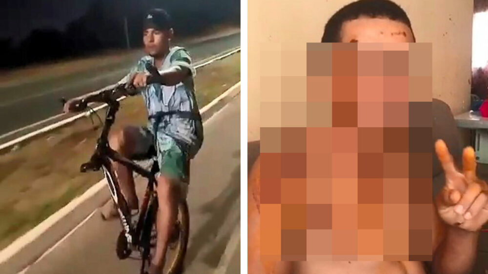 Hij weet behoorlijk indruk te maken met zijn wheelie zonder een voorwiel op zijn fiets, maar nog meer met alle schaafplekken over zijn hele lichaam...