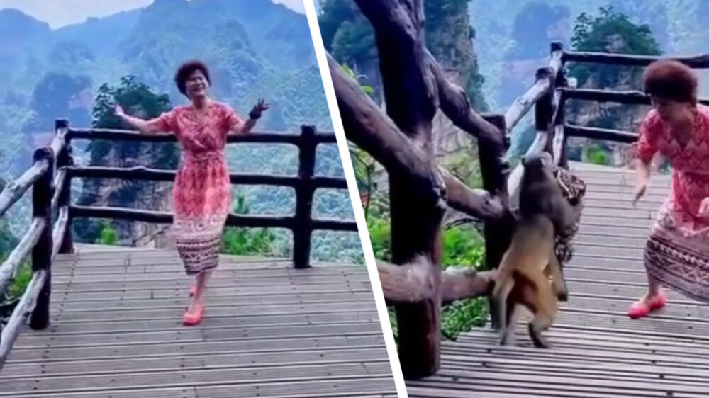 Aap grijpt zijn kans en jat de handtas van dansende dame