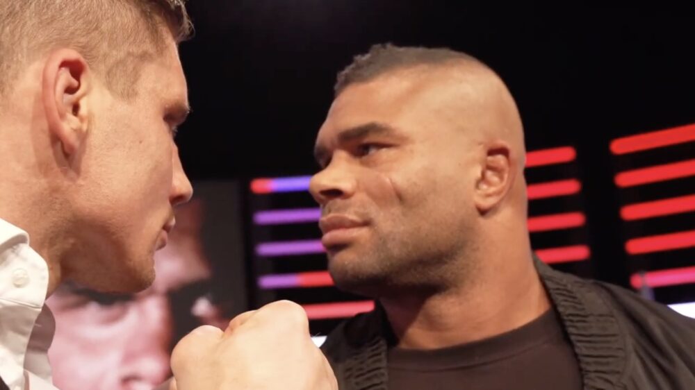 De staredown tussen Rico Verhoeven en Alistair Overeem voor GLORY Collision 3