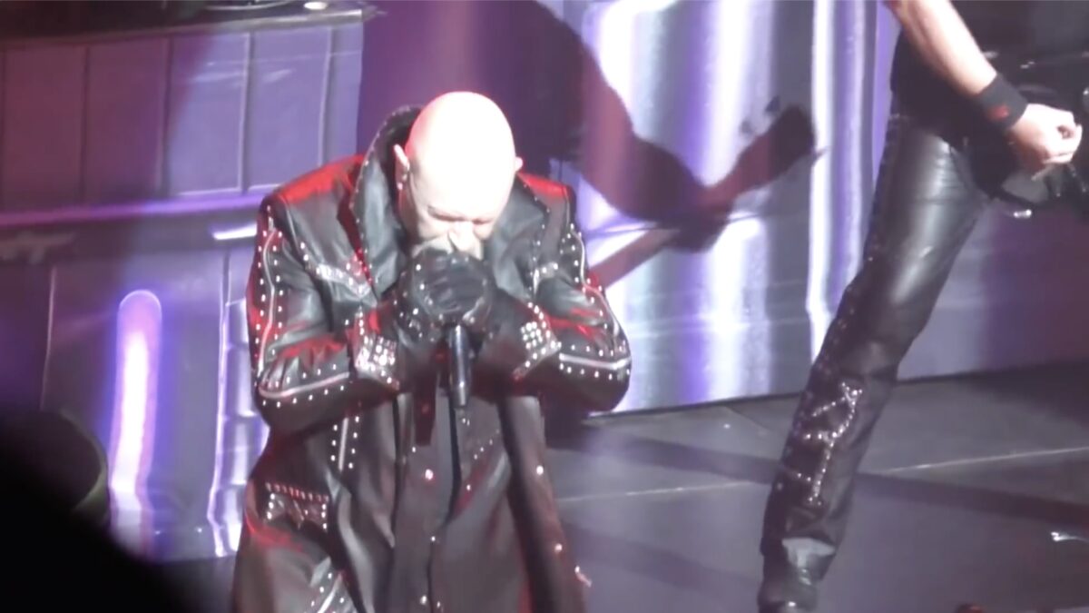 Rob Halford van Judas Priest trapt telefoon van filmende concertganger uit z'n klauwen