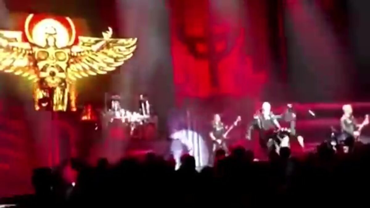 Rob Halford van Judas Priest trapt telefoon van filmende concertganger uit z'n klauwen