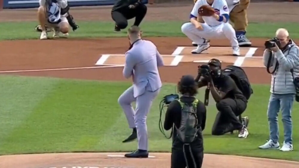 In Amerika is het bij sommige honkbalwedstrijden traditie om de 'first pitch' te laten doen door een bekend persoon. Gisteren was bij de wedstrijd tussen de Chicago Cubs en de Minnesota Twins de eer aan Conor McGregor, maar die kan het beter bij knokken houden.