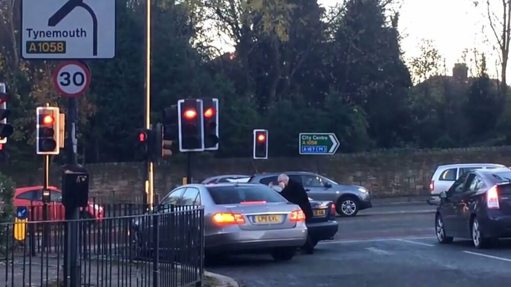 Herman flipt hem helemaal het pannetje uit op een druk kruispunt tijdens een verkeersruzie ergens in Engeland. Waarom weten we niet, maar zijn vrouw is onderhand wel een beetje klaar met hem. Doei, ik loop wel verder.