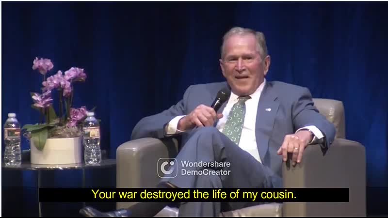 Twee dagen nadat Mike Prysner de ex-president aanviel tijdens een openbare speech (check de video hier) was het gisteren wéér raak. Deze demonstrant noemt George W. Bush een oorlogsmisdadiger en stelt dat hij in de bak zou moeten zitten...