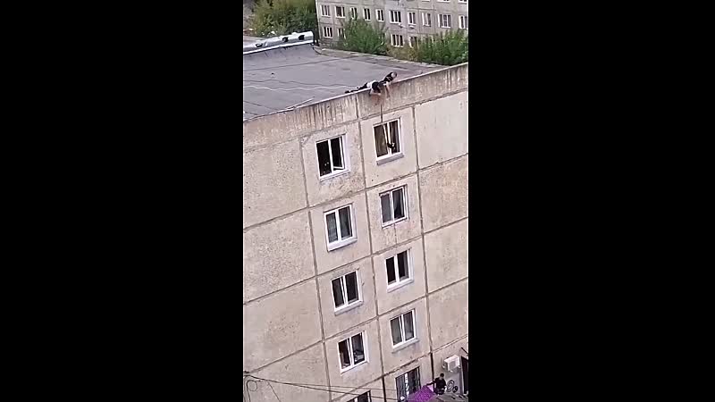 Levensgevaarlijk voor katten: kiepramen. Die krengen kunnen proberen daaruit te ontsnappen, vallen en klem komen te zitten in het kozijn. Effe op letten dus als je van die pluizenbollen in huis hebt, iets dat deze katteneigenaar nog niet in de gaten had. Gelukkig zijn er twee helden zonder cape die vanaf het dak het arme beestje uit zijn benarde positie bevrijden!
