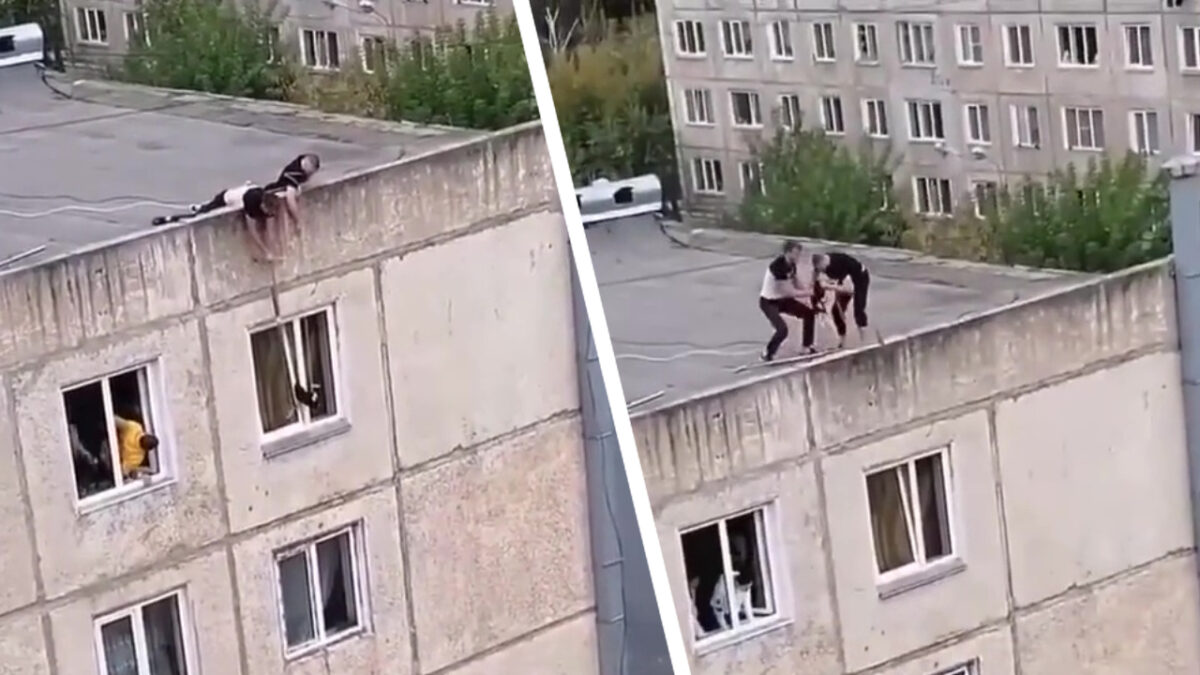 Levensgevaarlijk voor katten: kiepramen. Die krengen kunnen proberen daaruit te ontsnappen, vallen en klem komen te zitten in het kozijn. Effe op letten dus als je van die pluizenbollen in huis hebt, iets dat deze katteneigenaar nog niet in de gaten had. Gelukkig zijn er twee helden zonder cape die vanaf het dak het arme beestje uit zijn benarde positie bevrijden!