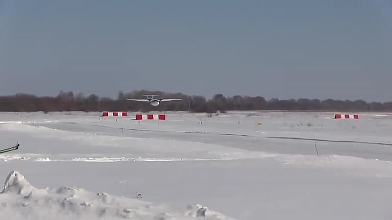 Dit is de Seagull L-44, een Russisch amfibievliegtuigje dat blijkbaar ook prima zijn weg weet op een goed besneeuwde landingsbaan. Keurig neergezet!