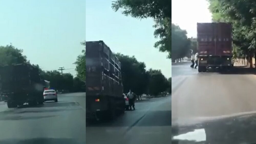 Vrachtwagenchauffeur heeft geen zin om te stoppen en rijdt politieagent ondersteboven Bizar