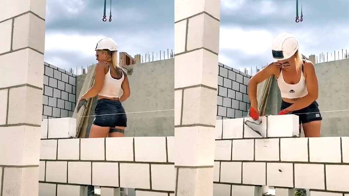 Fiet Fiew! Vrouwelijke metselaar gooit hoge ogen op de bouw