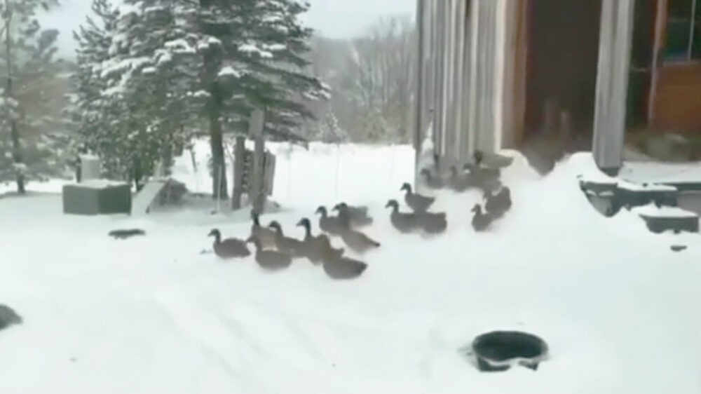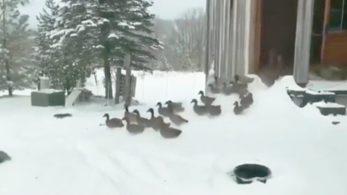 Jaaaaaaa, lekker naar buiten, lekker rondrennen en lekkere dingen ete... Oh wacht, nevermind, nee laat maar. Terug naar binnen. Naar de warme kachel. Eend goed al goed!