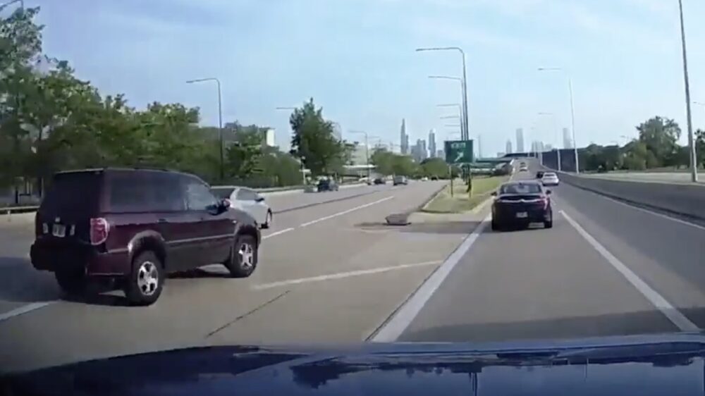 Hufter pakt nog net ff de afslag en veroorzaakt complete chaos