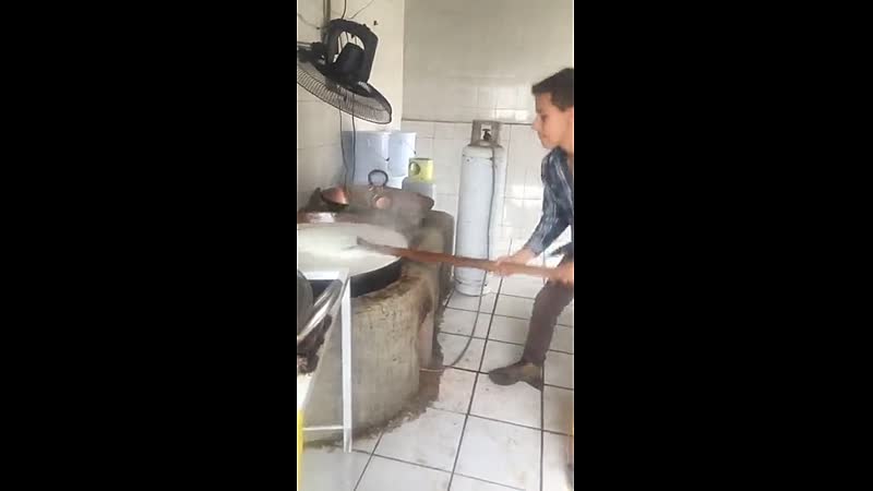 Je moet gewoon met deze enorme houten spatel flink in die zooi roeren, ventilatortje aan knallen en dan langzaam het vuur steeds hoger zetten. Kannie misgaan!