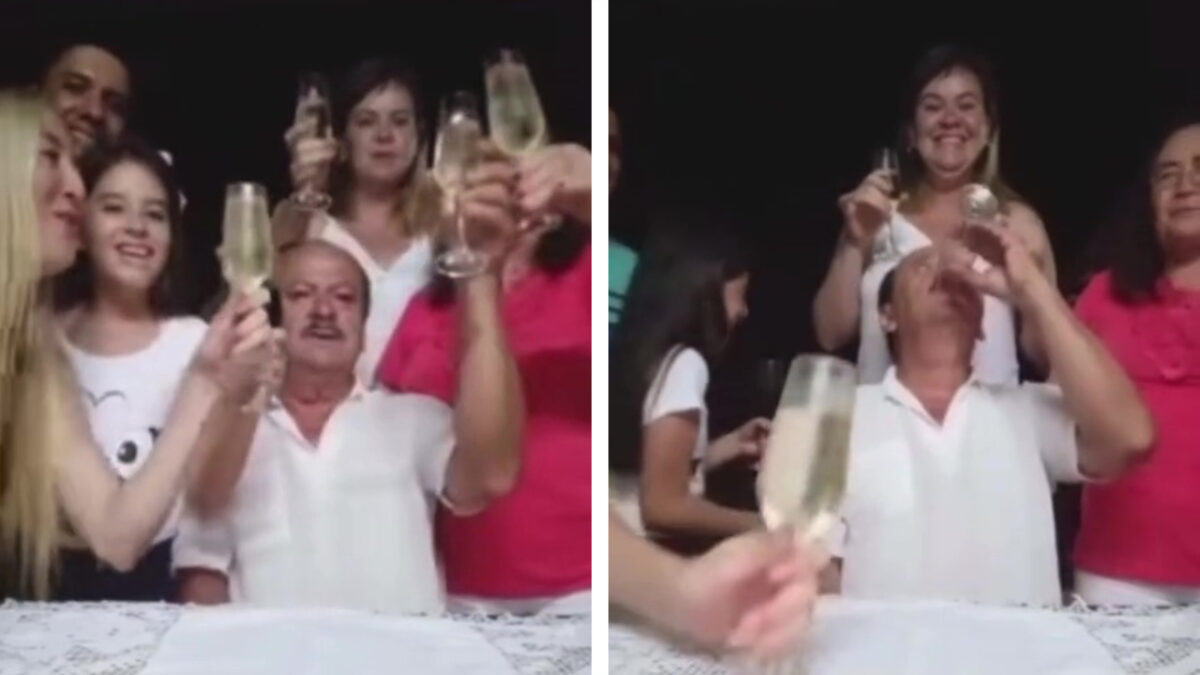 Proosten met je opa, prachtig natuurlijk, behalve als die beste man besluit zijn glas in je gezicht te deponeren. Proost!