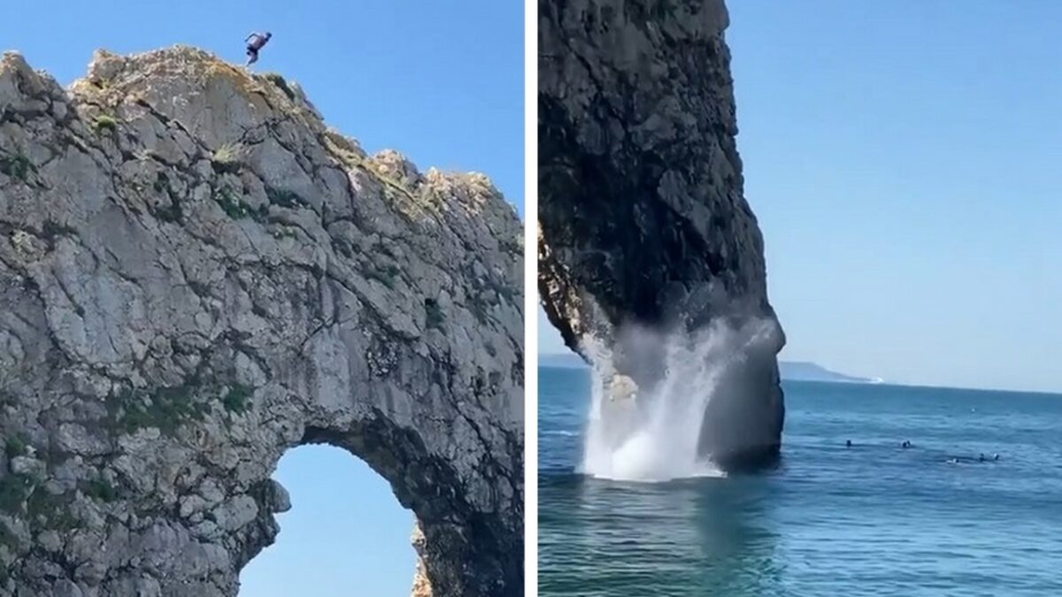 Waaghals kan op zoek naar een nieuwe ruggengraat als hij van klif springt Fails